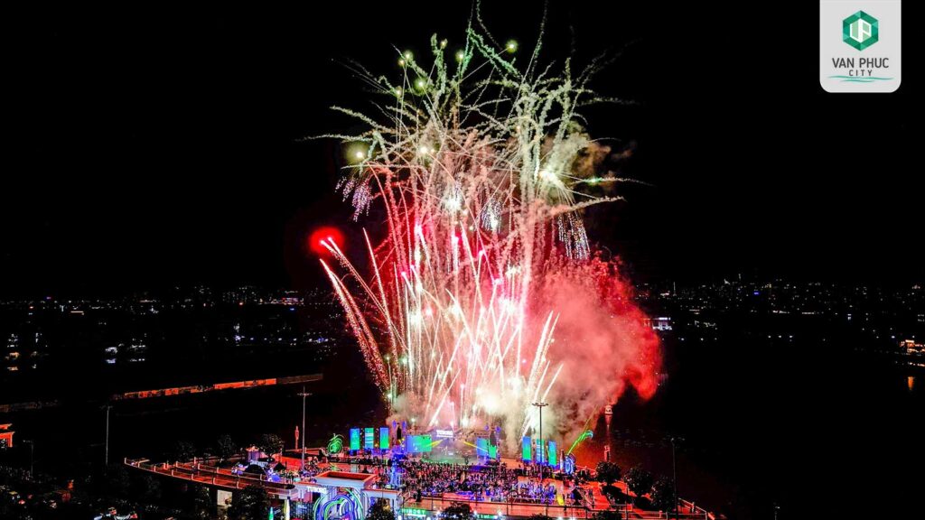 Hiệu ứng ánh sáng cùng water mapping và pháo hoa đặc sắc, hệ thống nhạc nước Vạn Phúc City đã có những màn trình diễn hoành tráng và mãn nhãn. Sự kiện mang đến bữa tiệc âm nhạc sôi động và đầy màu sắc, cổ vũ giới trẻ hết mình tận hưởng từng khoảnh khắc vui vẻ, cởi mở tìm đến những trải nghiệm mới lạ.