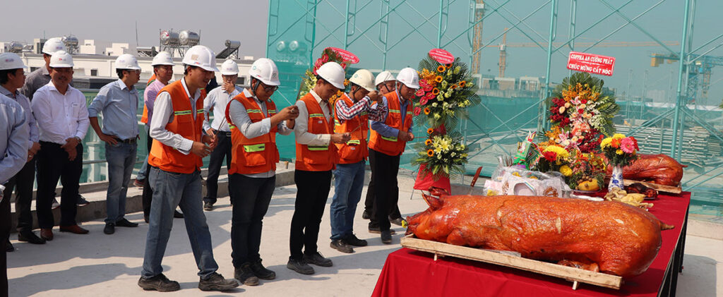 Tham dự lễ cất nóc có sự hiện diện của Phạm Hoàng Danh – Phó Tổng giám đốc Tập đoàn Vạn Phúc, đại diện nhà thầu Công ty 39 CONS và NAVICONS khách hàng cùng các đơn vị liên quan.