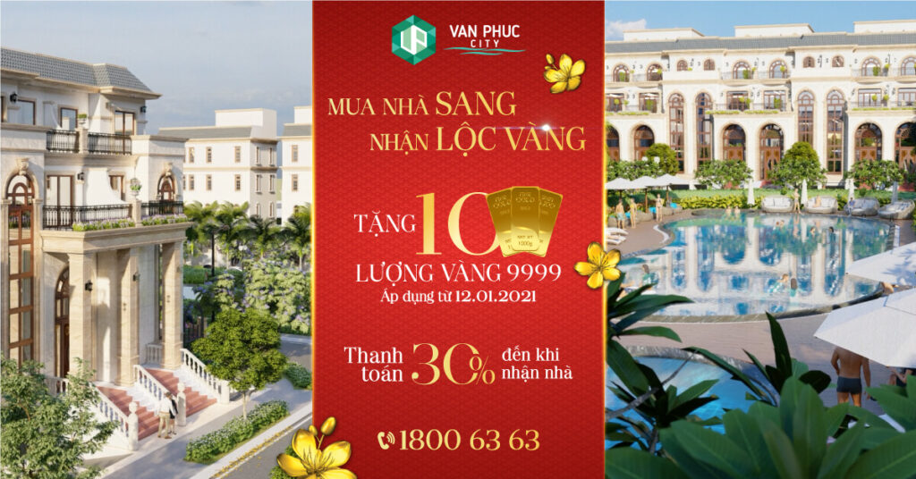 Nhân dịp chào đón năm mới Tân Sửu (2021), từ 12/01/2021 đến ngày 28/02/2021, Quý khách hàng mua nhà tại Khu đô thị Vạn Phúc sẽ được nhận ưu đãi lớn “Mua nhà sang nhận lộc vàng” từ CĐT với giá trị lên đến 10 lượng vàng.