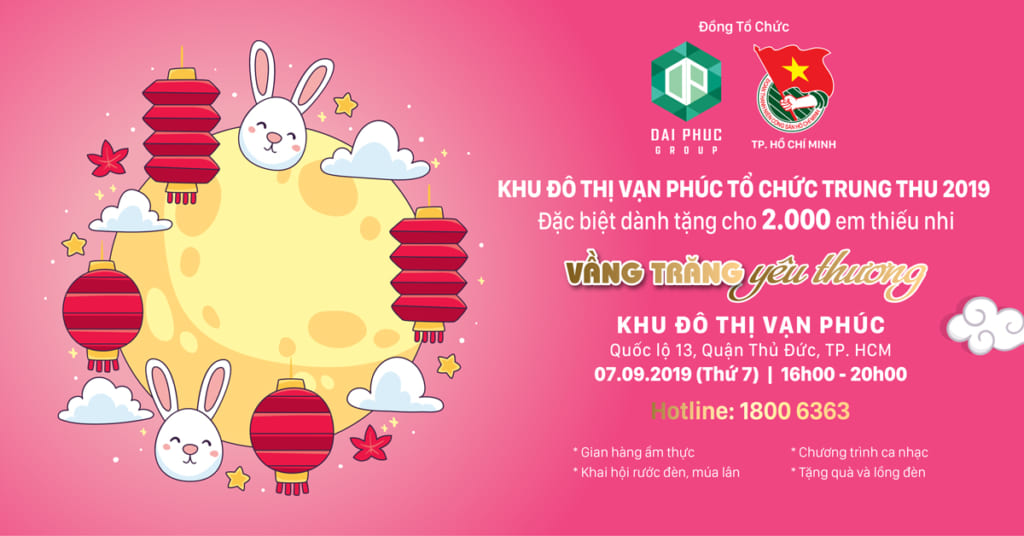 Với mong muốn sẻ chia niềm vui, yêu thương đến các em thiếu nhi, đặc biệt là các bé có hoàn cảnh khó khăn trong dịp Tết Trung thu 2019, Tập đoàn Bất động sản Đại Phúc phối hợp cùng Thành Đoàn TP.HCM tổ chức chương trình lễ hội trung thu với chủ đề “Vầng trăng yêu thương 2019”. Chương trình “Vầng trăng yêu thương 2019” hứa hẹn sẽ mang đến cho các em không gian ấm áp và tiếng cười hạnh phúc.