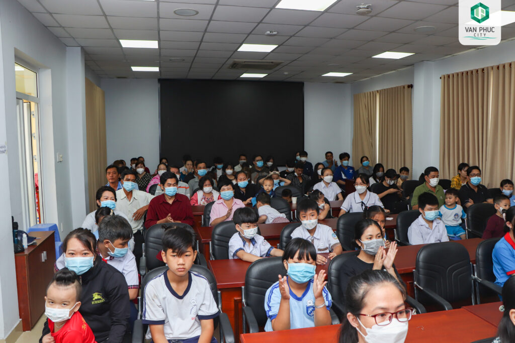 Tại chương trình, Ban Thường trực Ủy ban MTTQ Việt Nam Thành phố Thủ Đức và Công ty Cổ phần đầu tư Địa ốc Vạn Phúc phối hợp tổ chức thực hiện Chương trình “Điểm tựa tương lai” trao tặng kinh phí đỡ đầu cho 50 em mồ côi do dịch Covid-19 có hoàn cảnh khó khăn để giúp các em cũng gia đình có thêm động lực vươn lên trong cuộc sống.