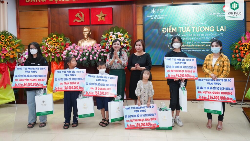 Sáng ngày 24/9/2022, tại Hội trường Thành ủy Thủ Đức, Vạn Phúc Group hân hạnh đồng hành cùng MTTQ Việt Nam TP. Thủ Đức và tài trợ hơn 6 tỷ đồng đỡ đầu 50 trẻ em mồ côi do dịch Covid-19 trong chương trình “Điểm tựa tương lai”.