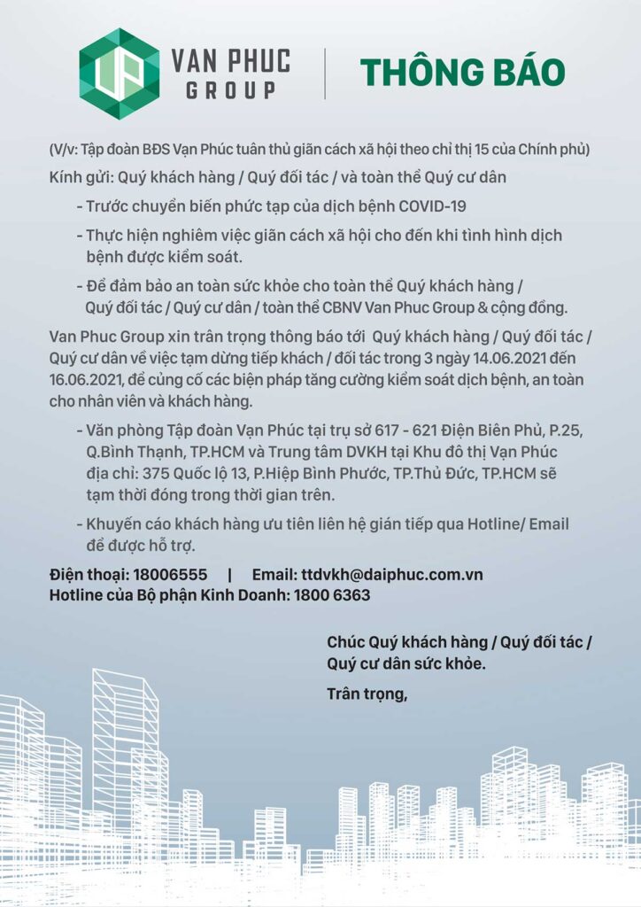 Vạn Phúc Group tuân thủ giãn cách xã hội theo chỉ thị 15 của chính phủ